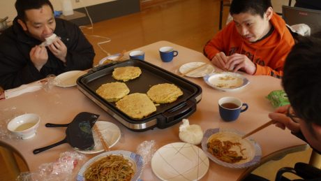 本会ではお好み焼き、焼きそばを調理し、料理の工程を楽しみながら、それぞれおいしくお召し上がりになりました。