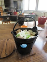 先日今年度初めてのいろり鍋を給食で提供しました。今回のお鍋は秋田県の郷土料理であるきりたんぽ鍋でした。やわらかく煮えたきりたんぽをみなさん美味しそうに召し上がっていました。