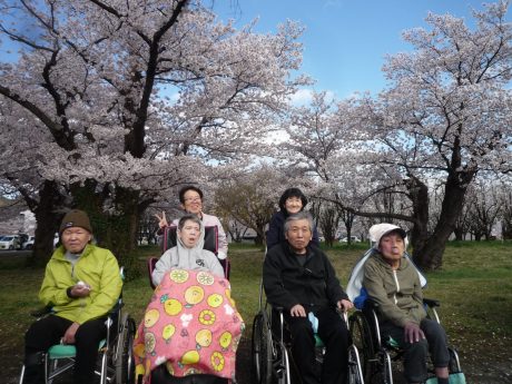 14日、16日、17日の3日間に渡り花見ドライブを行いました。飯坂支所へ行き、みんなで満開の桜を見ました。